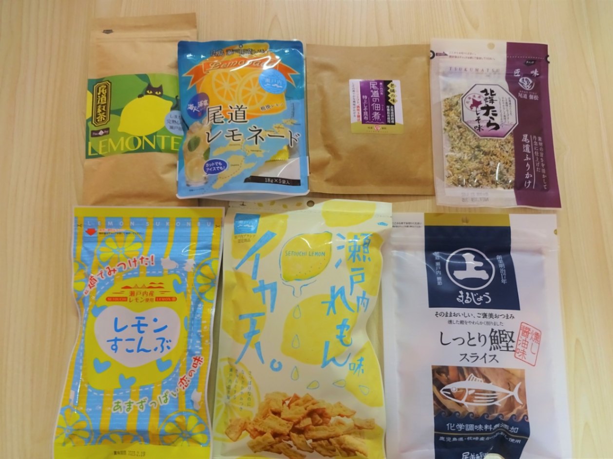 ●【全国配送】 ●内容/イカ天瀬戸内レモン味72g×1、匠ふりかけ北海たらしそ味32g×1、尾道の佃煮特上しそ昆布60g×1、レモンすこんぶ50g×1、尾道レモネード海人の藻塩入り18g×5入り、郷の味するめ天4枚入り、尾道紅茶LEMON TEA2.5g×10入り、しっとり鰹スライス55g×1、瀬戸内レモンかりんとう80g×1 ●特長/尾道土産の特選セット バラエティーに富んだ人気の尾道土産がそろった人気の詰合せセットです。 ●賞味期限/製造後120日 ●包装形態:全包装 二重包装不可 ●箱サイズ/347x285x90mm