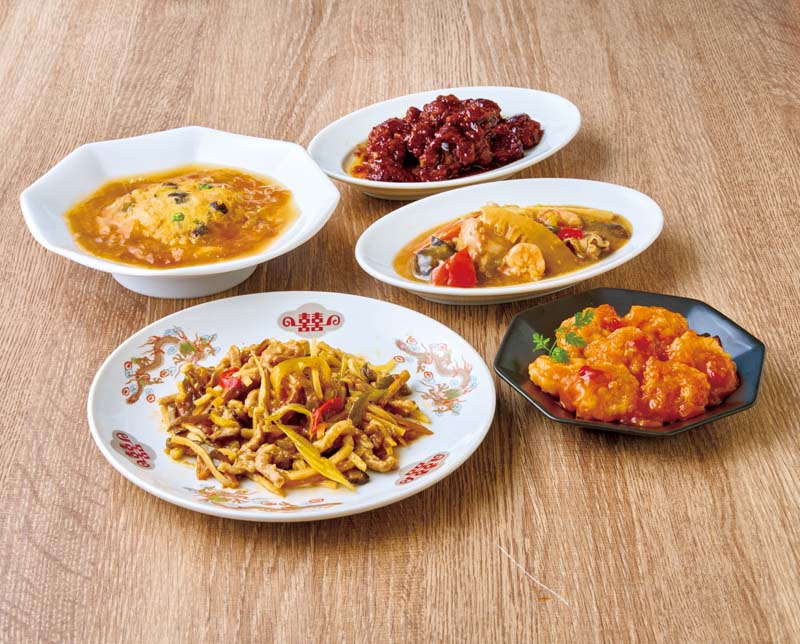 ●【凍】●包装形態/簡易包装●持参包装不可●内容/金華豚の青椒肉絲・金華豚の酢豚・海老のチリソース各150g、ふんわりかに玉185g、具だくさん八宝菜170g●賞味期間/製造後365日●承り終了日/12月16日(火)●お届け期間11/15頃〜12/26前後